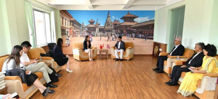 चिनियाँ नेतृ छु मिन सहितका चिनियाँ नेताहरूले आइतबार दिउँसो नेकपा एमालेको केन्द्रीय कार्यालय च्यासल पुगेर अध्यक्ष केपी शर्मा ओली लगायतसँग भेट गरेका छन् । उनीहरूबीच शिष्टाचार भेटघाट भएको एमालेले जनाएको छ ।