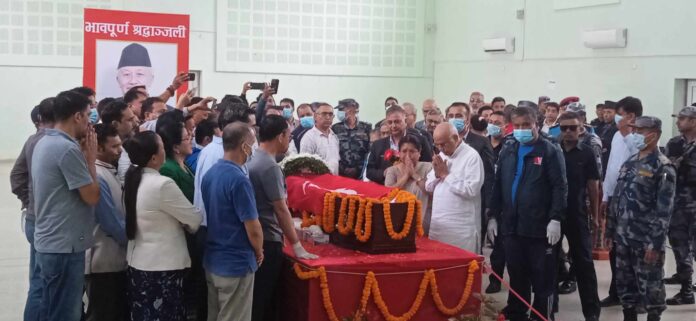 काठमाण्डौ । सुवासचन्द्र नेम्वाङको शव श्रद्धाञ्जली अर्पणका लागि नेकपा एमालेको पार्टी कार्यालय च्यासलमा राखिएको छ । त्रिवि शिक्षण अस्पताल महाराजगञ्जबाट नेपाली सेनाको टोलीले नेम्वाङको शव च्यासल पुर्याएको हो ।