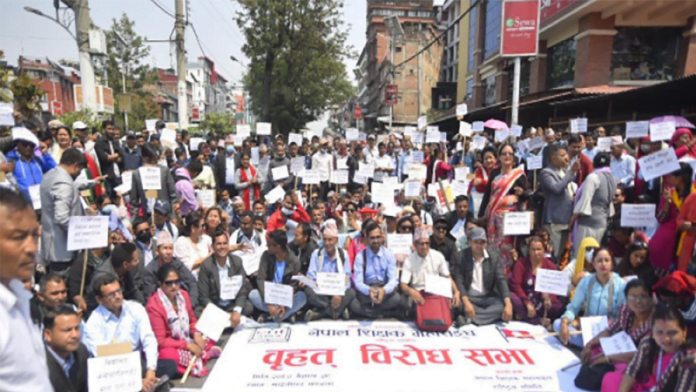 नेपाल शिक्षक महासङ्घको आह्वानमा राहत, करार, बाल विकास, स्थायी लगायतका शिक्षक कर्मचारी काठमाण्डौँ आएका हुन् । उनीहरूले आज ११ बजेदेखि माइतीघर मण्डलामा विरोध प्रदर्शन गर्ने महासंघले जनाएको छ । विद्यालय शिक्षा विधेयकप्रति महासङ्घले विभिन्न १८ बुँदे असहमति राखेको छ । सरुवा बढुवा, दरबन्दी, पालिकाअन्तर्गत नबस्नेसहितका माग छन् ।