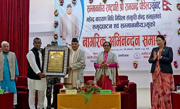जानकी मन्दिर दर्शन र पूजापाठ सहित विभिन्न कार्यक्रमका सरिक भएका पौडेलले आफ्नो नागरिक अभिनन्दन समारोहमा सचिवालयले लेखेको लिखित मात्र होइन मौखिक रूपमा बोलेका थिए । राष्ट्रपति खुलेर बोल्दा नेताहरू उत्साहित भएका थिए ।