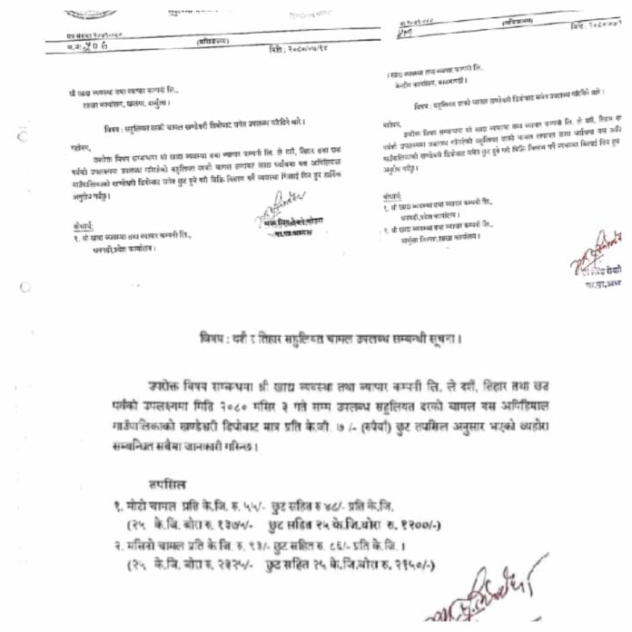 खाद्य व्यवस्था तथा व्यापार कम्पनी लिमिटेड खण्डेश्वरी डिपोबाट पनि पर्व विशेष छुटमा चामल विक्रिवितरण हुदै