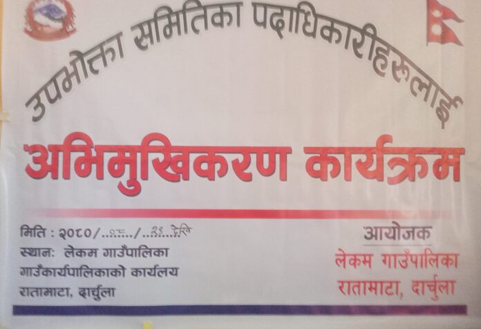 दार्चुला । दार्चुलाको लेकम गाउँपालिकाले चालु आर्थिक वर्षमा कार्यान्वयन हुने योजनाका उपभोक्ता समितिका पदाधिकारीहरुलाई अभिमुखिकरण तालिम दिइरहेको छ । प्रतेक वडामा सञ्चालन हुने योजनाका उपभोक्ता समिति पदाधिकारीहरुलाई अभिमुखिकरण तालिम दिने काम जारी रहेको लेकम गाउँपालिकाका सूचना अधिकारी शेखरचन्द्र ओझाले जानकारी दिनुभयो ।