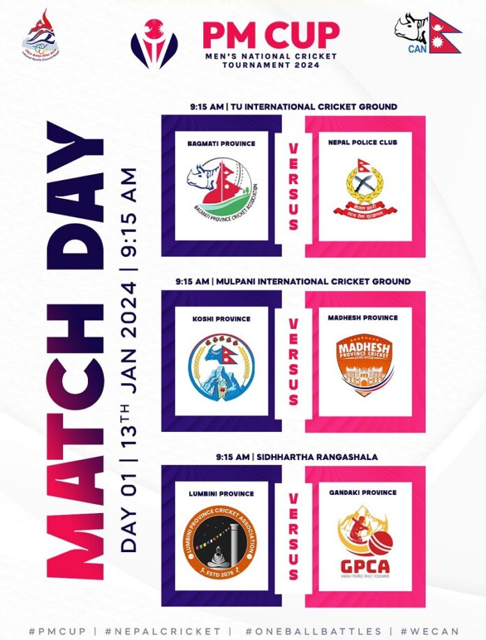 काठमाण्डौ । प्रधानमन्त्री कप एकदिवसीय राष्ट्रिय क्रिकेट प्रतियोगिता आजदेखि शुरु हुँदैछ । पहिलो दिन आज तीन वटा खेल हुँदैछन् ।