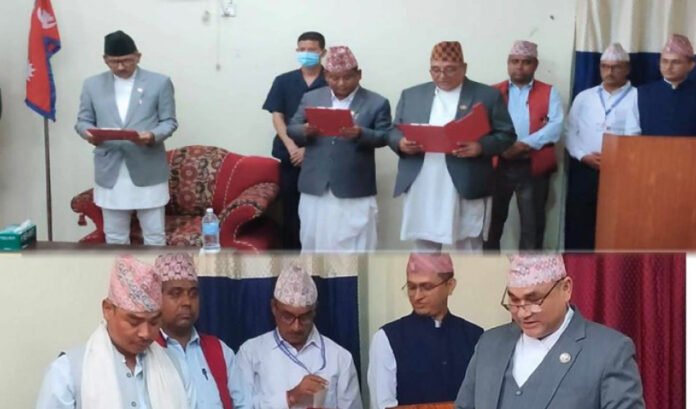 सुदूरपश्चिममा प्रकाशबहादुर देउवा भौतिक पूर्वाधार विकासमन्त्री, नरेशकुमार शाही आर्थिक मामिलामन्त्री, शिवराज भट्ट आन्तरिक मामिला तथा कानुनमन्त्री, झपटबहादुर साउद सामाजिक विकासमन्त्री, रमेशसिंह धामी उद्योग, पर्यटन, वन तथा वातावरणमन्त्री र रामेश्वर चौधरी भूमि, व्यवस्था, कृषि तथा सहकारीमन्त्री छन्। त्यस्तै, गीतादेवी माल उद्योग, पर्यटन, वन तथा वातावरण राज्यमन्त्री र कैलाश चौधरी भूमि, व्यवस्था, कृषि तथा सहकारी राज्यमन्त्री छन्।