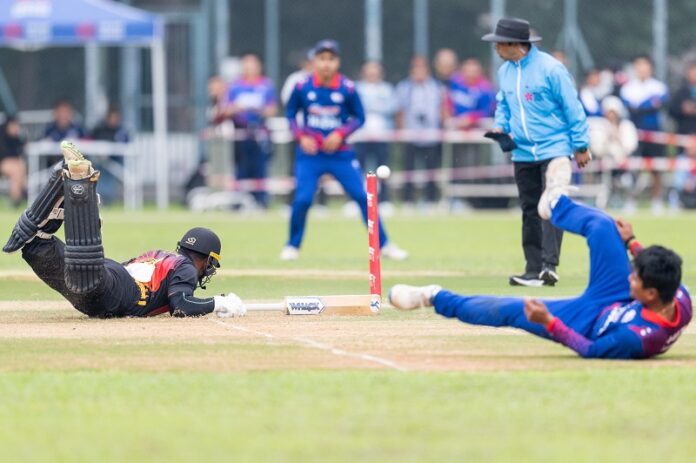 पीएनजीले दिएकाे १ सय ७२ रनकाे लक्ष्य पछ्याएकाे नेपाल १६ ओभर ३ बलमा ८५ रनमा अल आउट भयाे । नेपालका सन्दीप जाेराले सबैभन्दा धेरै १७ रन बनाए । पीएनजीका कबुआ माेरे, चाद साेपर र सेसे बाउले समान २ विकेट लिए ।