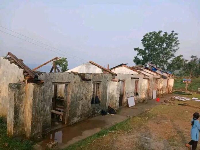 रानिशिखरमा हावाहुरीले विद्यालयको छाना उडायो