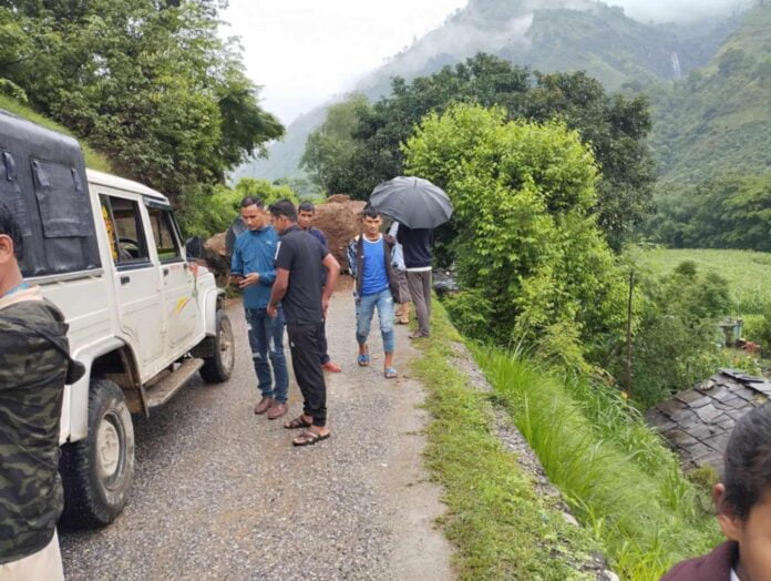 सडकमाथि बाट आएको पहिरोका कारण सडक अवरुद्ध भएको प्रहरीले जनाएको छ । सडक अवरुद्ध हुँदा बिहानदेखि छोटो तथा लामो दुरीका सवारी साधन बन्द भएका छन् । सडक माथिबाट ठूलो ढुंगा खसेको छ । सडकभन्दा तल दुई वटा घर समेत छन् । जसको कारण सडक खुलाउन समस्या भएको प्रहरीले जनाएको छ ।
