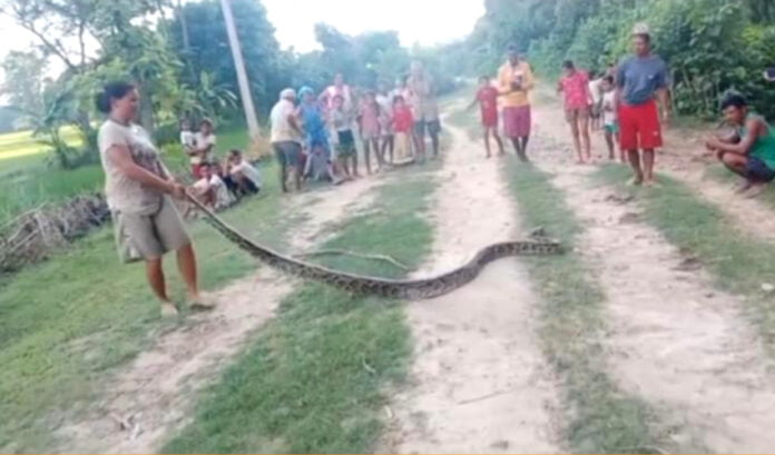 तीन मिटर लामो उक्त अजिंगरको उद्धार गरिएको थियो। स्थानीय महिलाहरुले अजिंगर देखेपछि बैजनाथ सामुदायिक वन उपभोक्ता समुहको वन्यजन्तु उपचार केन्द्रको टोलीले उद्धार गरेको थियो। उद्धार गरिएको अजिंगरको स्वास्थ्य परीक्षणपछि वनको सुरक्षित क्षेत्रमा छाडिएको थियो।