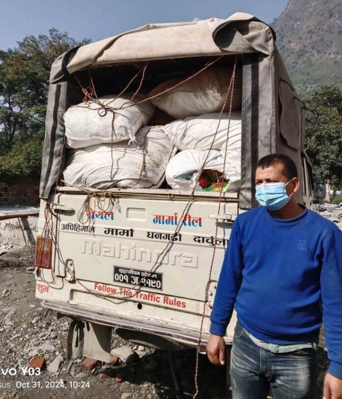 बैतडी डिलाशैनी गाउँपालिका– १ का सागर रानाले चलाउदै गरेको जीपमा घोडा बिडी १६ बोरा, हाइक्लास सुर्ती साढे ५ बोरा, सलाई १६ पेटी रहेको थियो ।