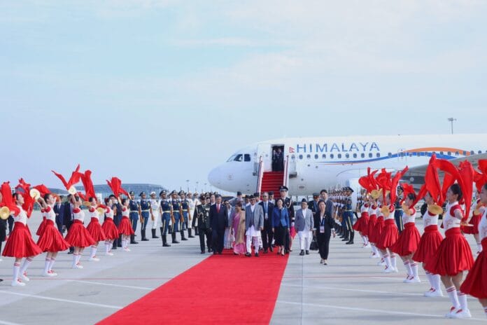 मित्रराष्ट्र चीनका राष्ट्रपति सी चिनफिङको मैत्रीपूर्ण निमन्त्रणामा नेपाली प्रतिनिधिमण्डलको नेतृत्व गर्दै प्रधानमन्त्री ओली हिमालय एयरलाइन्सको विशेष विमानमार्फत स्थानीय समय अनुसार दिउँसो ३:१५ बजे थियानजिन विनहाइ अन्तर्राष्ट्रिय विमानस्थलमा अवतरण गर्नुभएको हो।