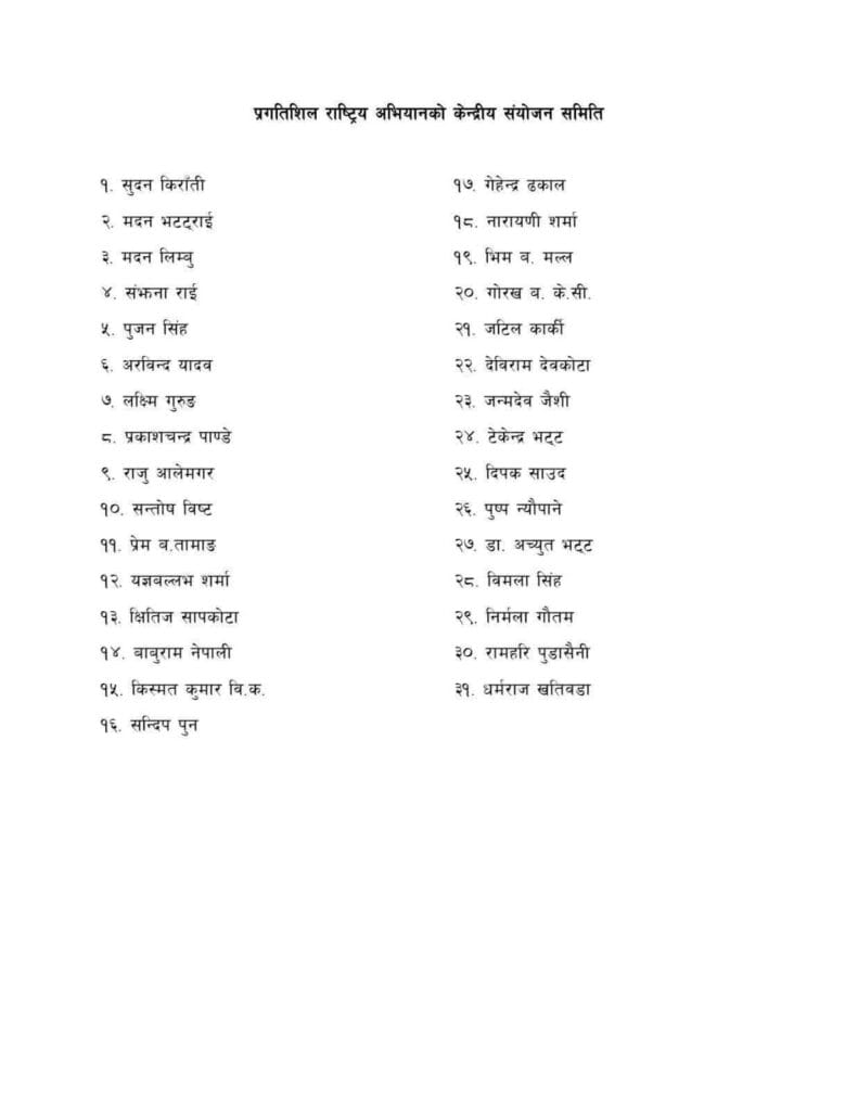 जनार्दन नेतृत्वको अभियान स् को–को छन् केन्द्रीय संयोजन समितिमा (सूचीसहित)