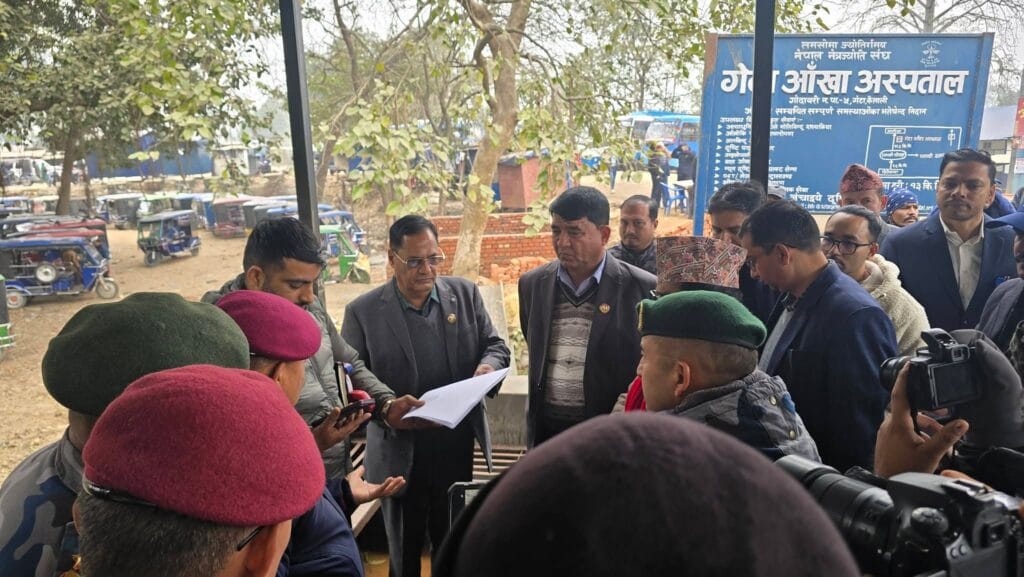 आर्थिक मामिला मन्त्री बहादुरसिंह थापा, भौतिक पूर्वाधार विकास मन्त्री सुरेन्द्र बहादुर पाल र आन्तरिक मामिला तथा कानुन मन्त्री हिरासिंह सार्कीले त्रिनगर (गौरीफन्टा) र गड्डाचौकी नाकामा निर्माणाधीन चेकपोष्टको अवस्थाको अवलोकन गरेका हुन्।