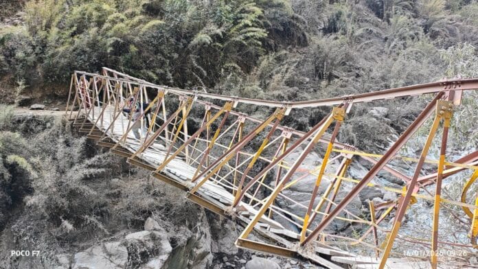 अपिहिमालका दुई वडा जोड्ने चमेलिया नदीको झोलुङ्गे पुल पहिरोले क्षतिग्रस्त