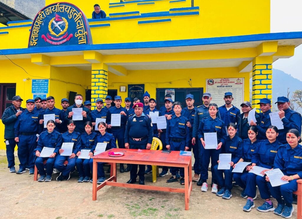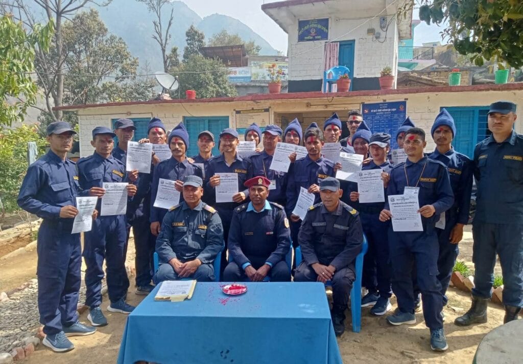 फागुन २१ मा प्रतिनिधिसभा सदस्य निर्वाचन शान्तिपूर्ण रूपमा सम्पन्न भएको छ । जिल्ला प्रहरी प्रमुख डिएसपी गाैरब महतले ओैपचारिक कार्यक्रम गरि उनीहरूलाई ‘धन्यवाद पत्र’ सहित बिदाइ गरेका छन् ।