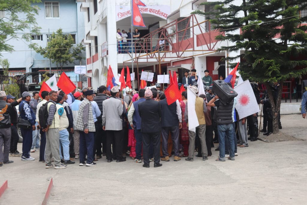 नेपाल कम्युनिष्ट पार्टी एमाले जिल्ला कमिटी दार्चुलाले जिल्ला प्रशासन कार्यालय दार्चुलामा ज्ञापनपत्र बुझाउँदै पार्टी अध्यक्ष केपी शर्मा ओली र नेपाली कांग्रेसका नेता तथा पूर्वगृहमन्त्री रमेश लेखकको गिरफ्तारीप्रति कडा आपत्ति जनाएको छ।