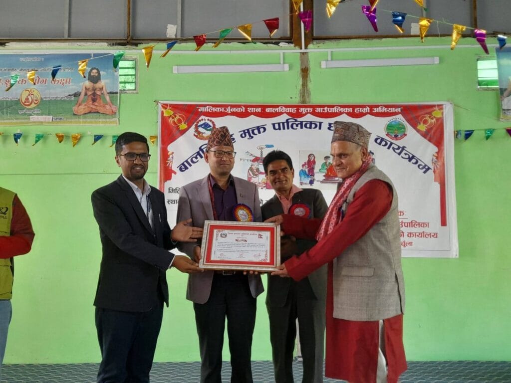 प्रमुख प्रशासकीय अधिकृत सुरजप्रसाद जोशीका अनुसार चरणबद्ध रूपमा वडाहरूलाई बालविवाहमुक्त घोषणा गर्दै पालिकालाई पूर्णरूपमा बालविवाहमुक्त गरिएको छ । बालविवाह मुक्त पालिका बनाउन पालिकाभरिका ११ वटै माध्यमिक विद्यालयमा किशोरी समुह, बालसंरक्षण समिति, निगरानी समिति तथा बालक्लवहरुलाई विभिन्न तालिमको आयोजना गरिएको थियो ।